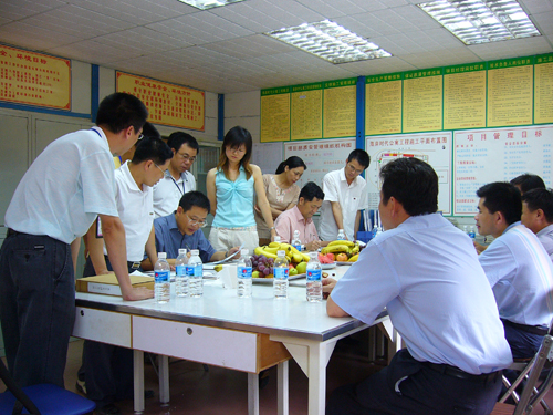 专家组先在项目部会议室里仔细地检查了工程的相关资料,公司机关与项目部上下全员配合,在检查过程中积极回答专家提出的问题,并互相交流了意见与建议。专家组还在我司领导和项目部主要负责人的陪同下,到施工现场着重检查了材料的堆放,工程的实体质量,厨房和饭堂的卫生情况等。他们肯定了我司在认证工作中所取得的成绩,同时也指明了不足之处,并提出整改意见。